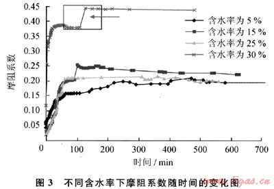 為了使天然氣水合物顆粒可以更好地分散在天然氣水合物漿液中并隨之一起流動(dòng),防止其聚集阻塞管道,分別向4種不同含水率的水一柴油乳狀液中加入了劑量不等的阻聚劑,由于流動(dòng)屬于層流范圍。因此運(yùn)用達(dá)西公式可以計(jì)算出每一時(shí)刻的摩阻,為:
