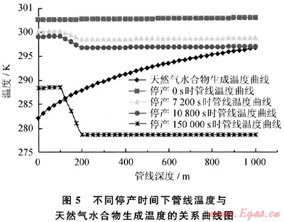 4) 隨著關(guān)井時(shí)間的延長(zhǎng),管線內(nèi)溫度逐漸接近于外界環(huán)境溫度,為防止天然氣水合物的生成,要盡量延長(zhǎng)無(wú)接觸時(shí)間。