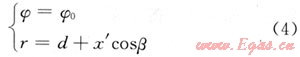,裂紋長為2a,O′為裂紋的中點,裂紋的傾角為β,裂紋相對最大水平地應力的方位角為φ0。求出裂紋面上每一點的正應力和剪應力,即可得到應力強度因子;求出裂紋面上每點的應力狀態(tài),即可得到剪應力和正應力;只需求出每點的r和φ,然后代入定向井井周應力計算公式即可得到應力狀態(tài)。根據(jù)假設可知: