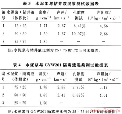 3.2 水泥漿與隔離液混漿聲學(xué)測(cè)試