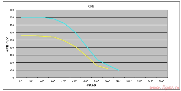 4、水調(diào)節(jié)特性:(黃線為0.1Mpa水壓、藍(lán)線為0.2Mpa水壓 )