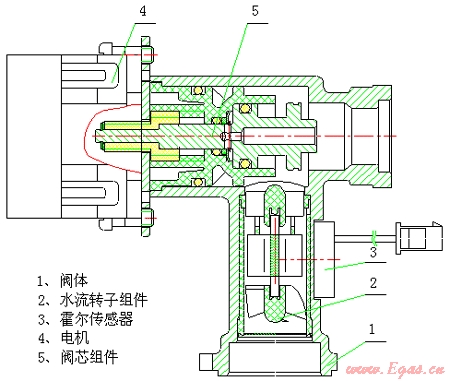 水量伺服閥是我公司根據(jù)國(guó)內(nèi)外市場(chǎng)發(fā)展的趨勢(shì),專門為實(shí)現(xiàn)燃?xì)饩咧悄芑刂贫兄崎_發(fā)的一種新型水比例調(diào)節(jié)閥并申請(qǐng)了實(shí)用專利。本專利產(chǎn)品包括閥體、水流轉(zhuǎn)子組件、霍爾傳感器、閥芯組件和電機(jī)等組成。其中,水流轉(zhuǎn)子組件縱向裝在閥體的進(jìn)水通道內(nèi),霍爾傳感器設(shè)在閥體的外部且與水流轉(zhuǎn)子組件的磁塊位置相對(duì)應(yīng),設(shè)在閥體內(nèi)的閥芯組件與設(shè)在閥體外部的電機(jī)連接,通過改變出水口間隙的大小實(shí)現(xiàn)水流量的調(diào)節(jié),可靠實(shí)現(xiàn)由于管網(wǎng)壓力波動(dòng)時(shí)保證水流量恒定。特別是燃?xì)饩咭胧须姾笈c相應(yīng)的燃?xì)饪刂票壤y聯(lián)合使用實(shí)現(xiàn)水氣聯(lián)調(diào),能可靠地對(duì)所用燃?xì)?、水流量進(jìn)行自動(dòng)調(diào)節(jié),實(shí)現(xiàn)燃?xì)饩呖焖僮詣?dòng)恒溫、定時(shí)開關(guān)機(jī)(手機(jī)信號(hào)無線遙控)、火力大小調(diào)節(jié)等智能化控制,節(jié)約能源,增加熱效能,大大地提高了燃?xì)饩叩男阅芎蜋n次。