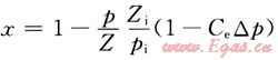對(duì)于定容封閉的干氣氣藏,氣藏將不會(huì)產(chǎn)水和有水體侵入,即We=0、Wp=0、Wc=0,代入式(2)整理后即可得到熟悉的定容封閉干氣氣藏物質(zhì)平衡方程: