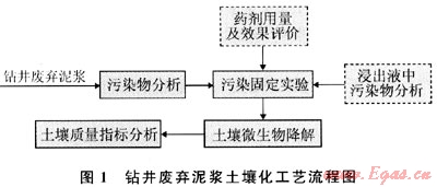國(guó)外對(duì)于鉆井廢棄泥漿的處理主要采用固液分離后再處理的方案。目前,國(guó)外主要開發(fā)固結(jié)性好,又具有一定肥效的固化劑,使固化后的泥漿污染物不易流失,將固化產(chǎn)物分散到土壤中,利用土壤中微生物降解泥漿中的污染物后可進(jìn)行耕植。國(guó)內(nèi)對(duì)廢棄鉆井液的處理研究較多,主要有固化法、化學(xué)氧化法、固液分離及生物處理法等[1~5],固化是目前國(guó)內(nèi)處理廢棄泥漿的主要方法,固化處理一般是向鉆井廢棄泥漿加入固化劑,使鉆井廢棄泥漿轉(zhuǎn)化成固相,然后填埋,從而減輕對(duì)環(huán)境的污染和危害,但也存在一定的環(huán)境污染隱患和政策風(fēng)險(xiǎn)。本研究根據(jù)鉆井廢棄泥漿的特點(diǎn),開發(fā)出相應(yīng)的廢棄泥漿污染物固定劑,對(duì)泥漿中的污染物進(jìn)行固定,然后與選擇的土壤混合,利用土壤中的微生物降解泥漿中的污染物后,將固相成分轉(zhuǎn)化為土壤資源,從而有效消除廢棄鉆井泥漿對(duì)環(huán)境的污染,減少固化占用的土地資源,為解決廢棄泥漿的污染尋找到了新的途徑。
