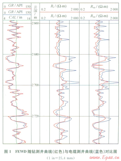 1.3 FEWD隨鉆測(cè)井曲線與電纜測(cè)井曲線對(duì)比