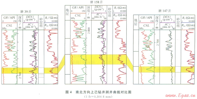2.1.3鄰井測(cè)井曲線連井對(duì)比[7-9]