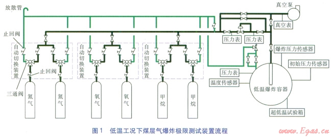 為研究液化工藝中低溫工況下燃爆的主要特性參數,本文設計了這套煤層氣的爆炸極限測試裝置,為下一步試驗的順利開展奠定了基礎,對有效解決煤層氣液化過程燃爆危險性研究的技術難點與關鍵問題做了良好的鋪墊。