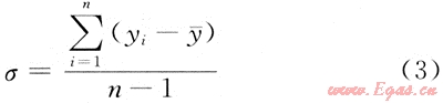 式中:σ為實驗標準偏差;yi為第i次的測量值;