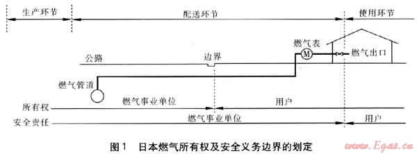 在日本,燃?xì)馑袡?quán)是以公路與用戶地產(chǎn)之間的邊界來(lái)劃定的。但燃?xì)馐聵I(yè)單位的安全保障義務(wù)延伸至用戶地產(chǎn)內(nèi)燃?xì)獗砗蟮膽魞?nèi)燃?xì)夤艿溃踔林边_(dá)燃?xì)獬隹?。另外,燃?xì)馐聵I(yè)單位有義務(wù)檢查用戶燃?xì)饩叩耐暾裕€要向用戶說(shuō)明如何安全使用該類燃?xì)饩摺?/span>