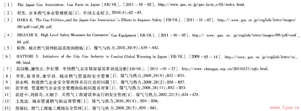 根據(jù)我國(guó)一些城市公布的統(tǒng)計(jì)結(jié)果,城市燃?xì)獍踩鹿室殉蔀槲覈?guó)繼交通事故、工傷事故之后的第三大殺手。燃?xì)馐鹿暑l出給政府、燃?xì)庀嚓P(guān)企業(yè)乃至公眾敲響了警鐘,也引發(fā)了關(guān)于如何提高城市燃?xì)獍踩乃伎肌T诔鞘腥細(xì)獍踩芾矸矫?,日本有很多?jīng)驗(yàn)值得借鑒。