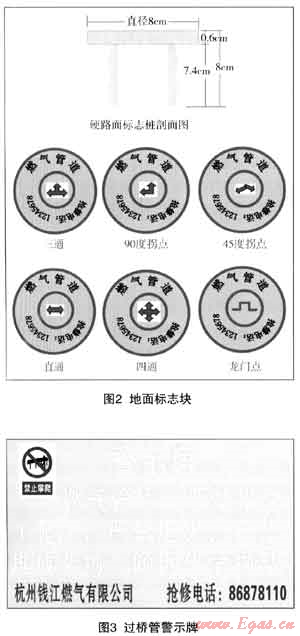 近年來下沙開發(fā)區(qū)城市建設(shè)加快,天然氣供氣規(guī)模也逐步擴大,對管網(wǎng)的巡查要求較之過去已大大提高。之前設(shè)置的管線標(biāo)志樁形狀大小不一,外型不美觀,且安裝設(shè)置也不夠規(guī)范,還存在缺失現(xiàn)象。巡線工需要依靠竣工圖紙來確定管位,但圖紙與實際管位還是存在不符的情況,故較難有效落實巡線工作,無法保證巡線質(zhì)量,成為完善燃?xì)夤艿兰霸O(shè)施日常維護、管理和保護的基礎(chǔ)工作的一道障礙。所以燃?xì)夤艿涝O(shè)施標(biāo)識設(shè)置的標(biāo)準(zhǔn)化已迫在眉睫,規(guī)范統(tǒng)一的安全標(biāo)識設(shè)置可以方便地實現(xiàn)對燃?xì)夤艿篮驮O(shè)施的定位,同時可以起到警告保護作用。另外,新穎美觀的標(biāo)識也可樹立燃?xì)馄髽I(yè)形象,并起到安全宣傳的作用。