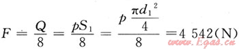 下面不考慮閥蓋等零部件重量的影響,對螺栓進(jìn)行受力分析。假定每根螺栓受力相同,則由于管線氣體壓力的作用使每根螺栓受到的拉伸力為: