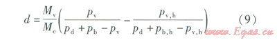 式中d——輸送單位質(zhì)量干煤氣所對應(yīng)的水蒸氣理論凝結(jié)量,kg/kg