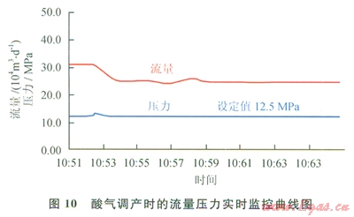 酸氣調(diào)產(chǎn)時(shí)的流量壓力實(shí)時(shí)監(jiān)控如圖l0所示。