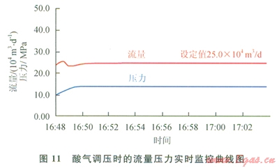酸氣調(diào)壓時(shí)的流量壓力實(shí)時(shí)監(jiān)控如圖ll所示。