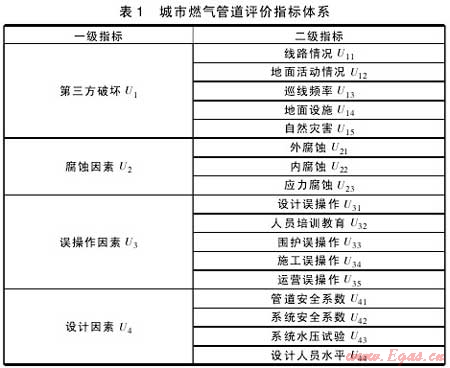 城市燃?xì)夤艿赖木C合評價指標(biāo)體系是對燃?xì)夤艿肋M(jìn)行風(fēng)險評價的基礎(chǔ)。依據(jù)一套能夠全面反映燃?xì)夤艿老到y(tǒng)運(yùn)行狀態(tài)的評價指標(biāo)體系所作出的風(fēng)險評價結(jié)果能夠真實(shí)地反映城市燃?xì)夤艿里L(fēng)險狀況;能夠?yàn)槿細(xì)夤绢A(yù)防危險事故的發(fā)生提供合理且有效的信息??梢姌?gòu)建全面科學(xué)的評價指標(biāo)體系對于風(fēng)險評價具有舉足輕重的作用,同時也能夠推進(jìn)城市燃?xì)夤艿老到y(tǒng)風(fēng)險管理體系的建設(shè)。
