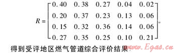 其次,綜合考慮影響管道失效的所有因素進(jìn)行二級模糊綜合評判確定管段的風(fēng)險等級,根據(jù)對各因素的等級計算得出模糊綜合評價集合R