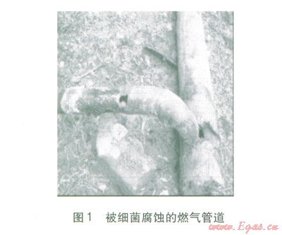 細(xì)菌腐蝕幾乎在土壤中均可發(fā)生,發(fā)生腐蝕后的管道表面有黃色或黑色的質(zhì)地疏松的銹層,創(chuàng)面邊緣不整齊,清除腐蝕產(chǎn)物后創(chuàng)面較粗糙??筛鶕?jù)腐蝕創(chuàng)面選擇尺寸合適的補(bǔ)件焊接修復(fù),但需注意腐蝕點(diǎn)周圍管材的腐蝕情況,避免因管壁過薄導(dǎo)致焊穿造成漏氣。如果腐蝕區(qū)域較大,則只能采取更換管段的修復(fù)方式。圖l為某搶修現(xiàn)場(chǎng)被細(xì)菌腐蝕的燃?xì)夤艿馈?span lang="EN-US">
