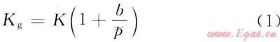 1941年Klinkenberg利用Warburg的滑脫理論建立了氣測滲透率(Kg)與絕對滲透率(K)的關系式[8]: