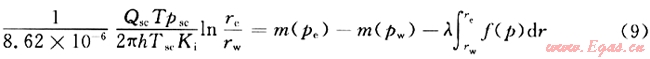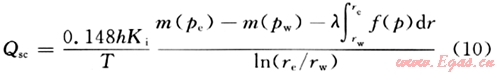 是由啟動壓力梯度引起的附加壓降,其值大小與地層中壓力分布有關。于是在法定單位之下,考慮氣體滑脫、啟動壓力梯度、應力敏感下的直井產量為: