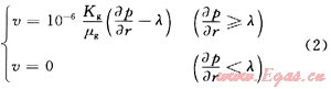 當λ=0、D=0時,產能公式就退化為只考慮氣體滑脫時的產能方程: