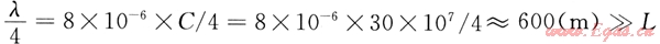 按雷電流的等效頻率10kHz計(jì)算,其1/4波長為
