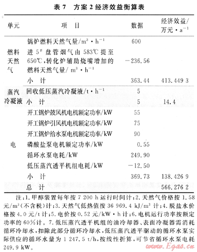 方案2的經(jīng)濟(jì)效益衡算結(jié)果如表7。