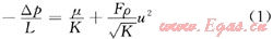 式中L為測點距離;U為平均流速;μ為流體黏度;K為滲透率;F為二次項系數(shù),由多孔介質的孔徑、空隙率等特征參數(shù)決定。