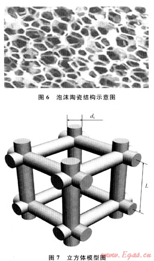 圖6為泡沫陶瓷結構示意圖。泡沫陶瓷是相互貫通的骨架,可簡化為立方體結構[16],如圖7所示。具體參數(shù)計算公式如下: