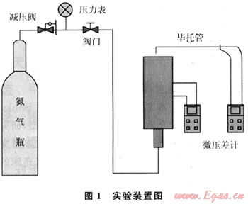 圖1為氣流通過泡沫陶瓷的流動阻力的實驗裝置圖。實驗氣源由高壓氮氣瓶提供,通過調整減壓閥與閥門的開度可以對氣流速度進行控制,以改變實驗工況。實驗段的壓力降和空截面流速采用數(shù)字微壓差計進行測量。數(shù)字微壓差計測試范圍為-100~+1500Pa,分辨率為0.1Pa,壓差精度為±1%讀數(shù)值。該儀表連接畢托管,即可進行風速測量,測量范圍為1~49m/s,精度為±0.07m/s。