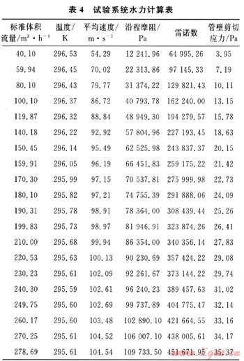 在進(jìn)行減阻劑測(cè)試之前,首先要進(jìn)行空白管道的水力分析??諝庥蓧嚎s機(jī)壓縮到0.8MPa后進(jìn)入測(cè)試管道,保證壓縮機(jī)出口壓力pi不變,標(biāo)準(zhǔn)體積流量Qg調(diào)節(jié)范圍為40~280m3/h,經(jīng)測(cè)量、計(jì)算得到一組數(shù)據(jù)如表4所示。