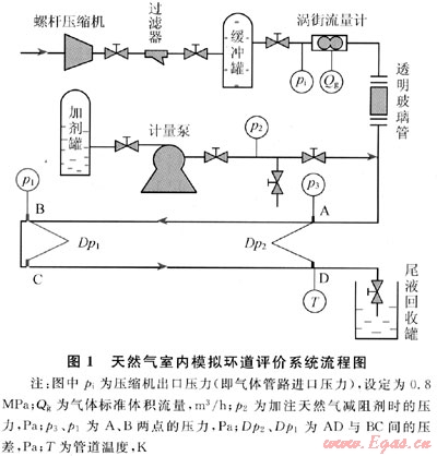 根據(jù)對(duì)天然氣管輸減阻劑性質(zhì)及作用機(jī)理的研究,設(shè)計(jì)了天然氣室內(nèi)模擬環(huán)道評(píng)價(jià)系統(tǒng),如圖1所示。