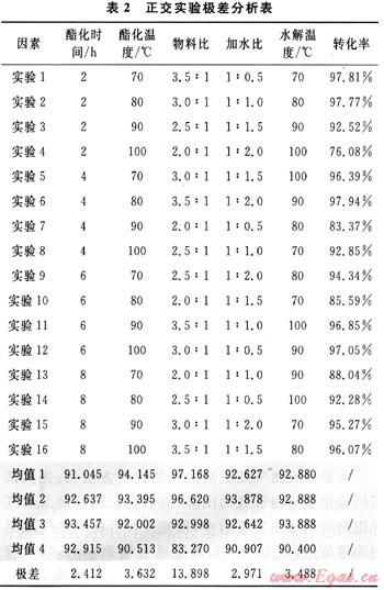 2 正交實(shí)驗(yàn)結(jié)果討論