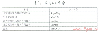 目前,國(guó)內(nèi)外的GIS平臺(tái)縱多,詳見表l和表2。