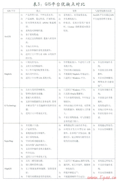 各個(gè)GIS平臺(tái)優(yōu)缺點(diǎn)以及與選型依據(jù)的對(duì)比如表3