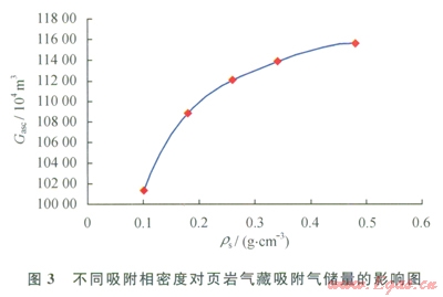 3)筆者探索性地研究了吸附相密度對頁巖氣地質(zhì)儲量的影響。隨吸附相密度增大,頁巖氣藏吸附氣儲量增大,而總地質(zhì)儲量略有減小。對于儲層溫度、壓力、孔隙半徑與吸附相密度的關(guān)系及最終對儲量計算的影響還有待進(jìn)一步研究。