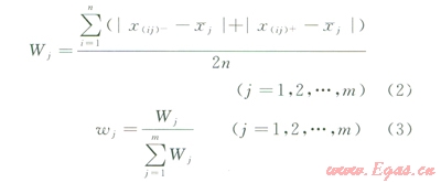 最后,對(duì)各指標(biāo)的變異系數(shù)歸一化處理,計(jì)算指標(biāo)權(quán)重(wj)