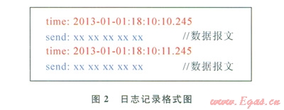保存日志的命名規(guī)則為日期+鏈路名稱(chēng)的組合,如“20130101_測(cè)試站.log”,日志記錄的格式如圖2所示。