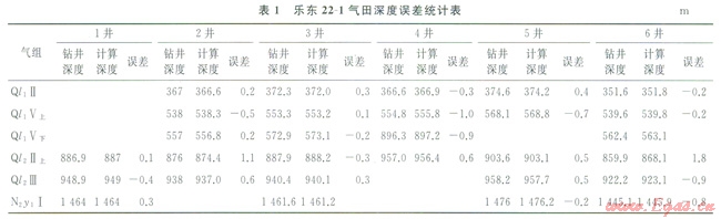 對該區(qū)速度譜有了清晰的認識后,分兩部分進行速度分析。在“模糊區(qū)”外主要解釋了高分辨率二維地震速度譜,在“模糊區(qū)”內(nèi)主要用1993年常規(guī)二維地震測線的道集和部分l996年高分辨率二維地震資料進行交互速度分析拾取。速度體的建立[6]要經(jīng)過速度解釋、數(shù)字化輸入等多個環(huán)節(jié),難免會出現(xiàn)一些差錯,為了解決這一問題,使建立的速度體更加準(zhǔn)確可靠,采用“INDEPTH”軟件的速度監(jiān)控功能對速度資料進行了質(zhì)量控制。較好地從點、線、面上找出野值或不合規(guī)律的值,經(jīng)質(zhì)量控制后,消除這些野值和奇異點,使地震速度更加準(zhǔn)確可靠,對比各井VSP速度與井旁地震速度譜速度發(fā)現(xiàn),兩種速度非常接近,雖然仍有一定的誤差,但已完全可以滿足精度要求。把經(jīng)質(zhì)量控制后的速度數(shù)據(jù)進行格式轉(zhuǎn)換,用“EARTHVISION”軟件進行三維網(wǎng)格化(網(wǎng)格間距為250m×250m×20ms),再用6口井的VSP速度進行校正,獲得了準(zhǔn)確可靠的地震速度體[10]。將該速度體轉(zhuǎn)換的深度構(gòu)造圖與井點實鉆進行比較,其絕對誤差最大為l.8m,精度較高(表1)。
