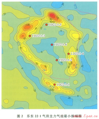 樂東22-1構(gòu)造是基于1993年采集的二維地震資料解釋發(fā)現(xiàn)的,但是由于受模糊區(qū)的影響,當(dāng)時所解釋的構(gòu)造全區(qū)呈“U”形,“U”形范圍內(nèi)地震資料有屬性異常,如該異常代表含氣,則該氣田應(yīng)屬巖性圈閉氣藏。最終通過6口探井的鉆探,同時在評價期間還增加了高分辨率二維地震資料,落實該氣田主體是一相對完整的大中型穹隆背斜圈閉(圖1)。