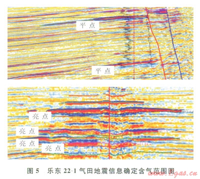 這一評價思路慕于以下幾點認識:①“模糊區(qū)”的形成可能是由淺層氣屏蔽和熱流體造成;②“模糊區(qū)”在時間剖面上的下凹,很可能是速度陷阱造成的假象,可能是構(gòu)造的高部位;③從沉積相分析,該區(qū)儲層可能是連片分布的,也就是說“模糊區(qū)”內(nèi)可能存在儲層;④該區(qū)域已發(fā)現(xiàn)的東方1-1氣田和樂東l5-1氣田的含氣范圍在地震資料上都有平點或亮點等異常特征,該氣田可能也存在這一特征。