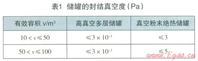 (2)設(shè)計(jì)文件應(yīng)對(duì)LNG儲(chǔ)罐提出明確的保冷指標(biāo)要求。不論是真空粉末絕熱儲(chǔ)罐還是高真空多層絕熱儲(chǔ)罐對(duì)保冷都應(yīng)有明確的要求,即某體積的儲(chǔ)罐都應(yīng)對(duì)應(yīng)相應(yīng)的真空度和靜態(tài)蒸發(fā)率,超過(guò)這些數(shù)值指標(biāo)就達(dá)不到保冷效果,蒸發(fā)氣體產(chǎn)生量就會(huì)增加,應(yīng)及時(shí)抽真空處理或采取其他措施。綜合相關(guān)規(guī)范和工程實(shí)踐,提出儲(chǔ)罐的保冷指標(biāo)要求,儲(chǔ)罐的封結(jié)真空度指標(biāo)要求見(jiàn)表1,靜態(tài)蒸發(fā)率指標(biāo)(上限)要求見(jiàn)表2。
