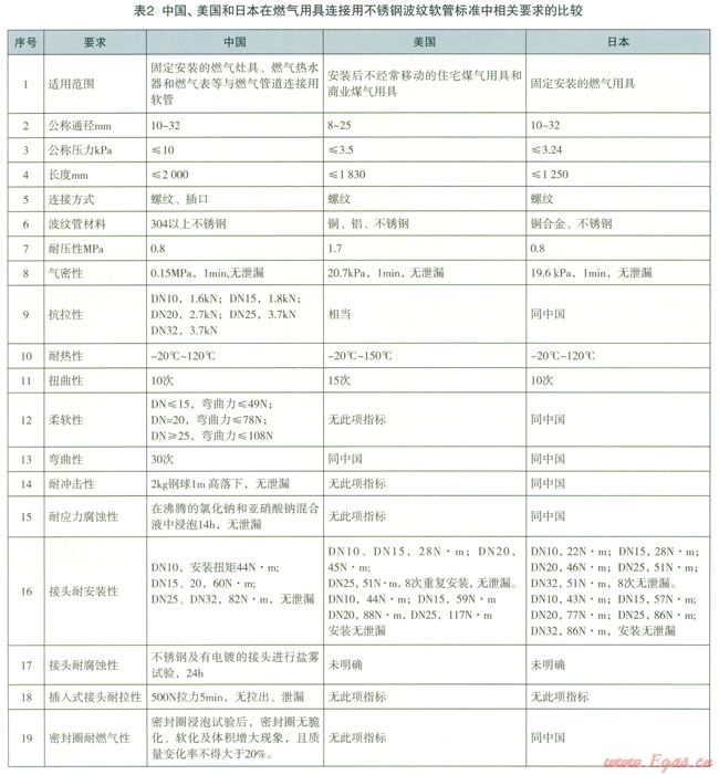燃?xì)庥镁哌B接用不銹鋼波紋軟管?chē)?guó)內(nèi)外相關(guān)標(biāo)準(zhǔn)比較及淺析