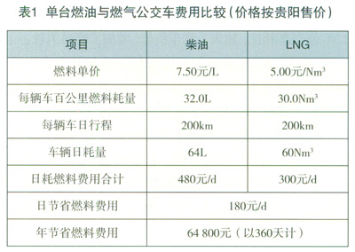 (4)LNG公交車兩天加一次氣,比CNG公交車減少了加氣次數(shù),且兩天為加氣往返里程減少一次,如貴陽每次加氣所需的往返里程平均5km左右。為此,采用LNG公交車既減少了為加氣所需的往返里程,又節(jié)約了因往返里程產(chǎn)生的燃料消耗與運(yùn)行費(fèi)用。若按照一次加氣所需的往返里程5km計(jì),一年(360天計(jì))一輛LNG公交車可節(jié)約900km,可年節(jié)約天然氣270m3。