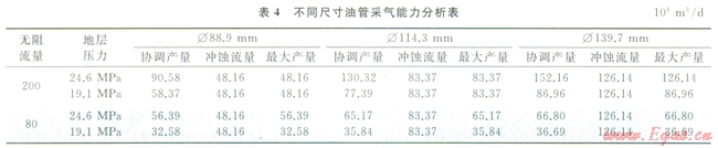3.1.4滿足采氣要求的油管尺寸