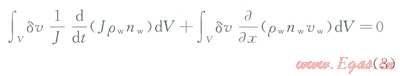 式中J為儲層孔隙的體積改變率,無因次;nw為孔隙中液體體積與儲層總體積的比值,無因次;rw為儲層液體密度,kgm3x為液體流動的方向向量,mdt為時(shí)間步,s;uw為儲層液體的流動速度,ms。