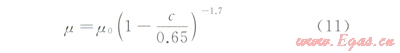 式中m為等效后的液體的黏度,Pa·s;m0為無支撐劑的液體黏度,Pa·s;C為攜砂液中支撐劑的體積濃度,無因次。