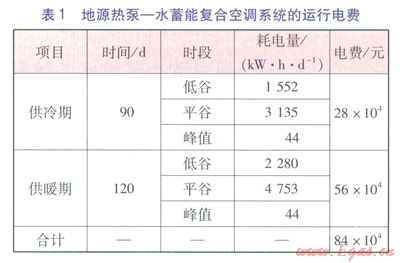 ①地源熱泵一水蓄能復合空調系統(tǒng)運行電費