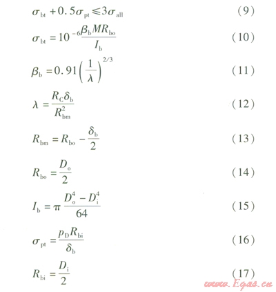 式中sbt——彎頭在彎矩作用下最大環(huán)向應(yīng)力變化幅度,MPa