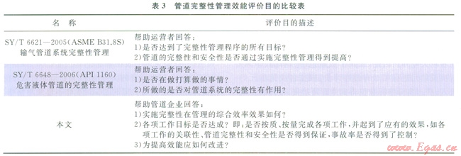 由于管道完整性管理的概念引入較晚,目前國(guó)內(nèi)法規(guī)還沒(méi)有針對(duì)管道完整性管理效能評(píng)價(jià)的相關(guān)要求。目前國(guó)內(nèi)主要遵照?qǐng)?zhí)行是將ASME B318SAPI ll60等同采納而轉(zhuǎn)標(biāo)的2個(gè)推薦性行、世標(biāo)準(zhǔn),即《SYT 66212005輸氣管道系統(tǒng)的完整性管理》及《SYT 66482006危險(xiǎn)液體管道的完整性管理》,其中對(duì)于效能評(píng)價(jià)的相關(guān)要求與ASME B318SAPI 1160的內(nèi)容一致。
